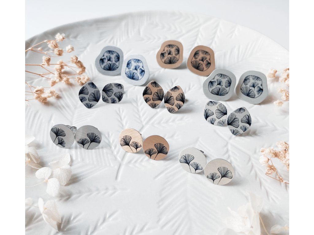 ✲ Autorské náušnice ve tvaru kruhu z minikolekce Ginkgo.